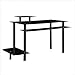 DP1032GBM Finish: Black Marble Features: -Ergonomic design. -Mulitple Configurations. -Tempered glass table top. -CPU and printer shelves. -Easy and ready to assemble. -Availble in Bird Eye or Black Marble Finish. Read more