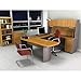 Executive Cappuccino Cherry collection reversible U shape computer work station by Bestar is made of durable commercial grade engineered wood with a melamine finish that resists scratches, stains, and burns.U desk features two letter/legal file drawers with metal slides, a utility drawer, a large keyboard tray, and adjustable leg levelers. All drawers lock for security. Hutch provides additional concealed storage space, two paper slots, and a rubber strip for wire management.Ships ready to assemble. Read more
