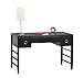 77503BLK-01-KD-U Features: -Desk. -East End collection. -Combination of black and chrome finish. -Birch solids, veneers, and MDF construction. -Three drawers with metal glides. -Nickel colored accents and hardware enhance the contemporary appearance. -Large table top surface makes this desk ideal for use as a writing or laptop desk. -Spacious work surface. -Sides of the unit are accented by a sleek and modern ladder design. -Elegant blend of ultra modern design features, quality, and functionality. -Assembly Required. Read more