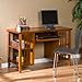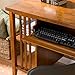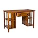 Simple yet functional this computer desk makes organization easy. Crafted with all wood construction this cherry wood desk has open slats on the sides with two built in shelves on each side for added storage of files and books. A spacious drawer sits inside the desk for all your writing utensils and accessories. Perfect for the home office or bedroom this desk would be the perfect addition to your home. Shelf space without adjustable shelf added - 17-1/2-inch W by 11-1/2-inch D by 23-1/2-inch H; Comes with 1 adjustable shelf on each side of desk; Magnetic drawer folds down to become keyboard rest; 2 Brass handles on drawer; Open back undeneath desk for added leg room. Read more