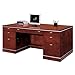DMI Belvedere collection 72'' executive desk is constructed of hardwood solids and veneers with heavyduty mortise and tenon joints for maximum strength and durability. The top features book matched and figured Anigre veneers with ebony borders and a lacquer finish.Executive desk features a cable accessible center/keyboard drawer with a dropfront and pencil tray. Storage space is ample, with four box drawers and two letter/legal file drawers. All drawers are French dovetailed and operate on full extension ball bearing slides. File drawers lock for security. Grommets in the desk top corners facilitate cable management. Adjustable floor levelers help to compensate for less than even flooring.Ships fully assembled. Read more