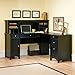 Sauder Sierra Heights collection Ldesk with hutch is constructed of engineered wood with a dark Ebony Ash laminate finish. The dark finish helps the Shaker styling transition into more contemporary environments.Desk features a large (267/8''W) pencil drawer with a drop front panel that allows it to conver to a laptop/keyboard tray. Desk top has grommet holes for electrical cord access. File drawer with full extension slides holds letter size files. Three small storage drawers have metal runners and safety stops. Doored storage cabinet has an adjustable shelf and makes a pefrect home for your PC tower.Hutch features convenient cubby hole storage areas with adjustable shelves. Cord management system helps reduce clutter. Ships ready to assemble. Read more